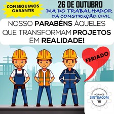 O Dia do Trabalhador da Construção Civil é celebrado anualmente em 26 de outubro.